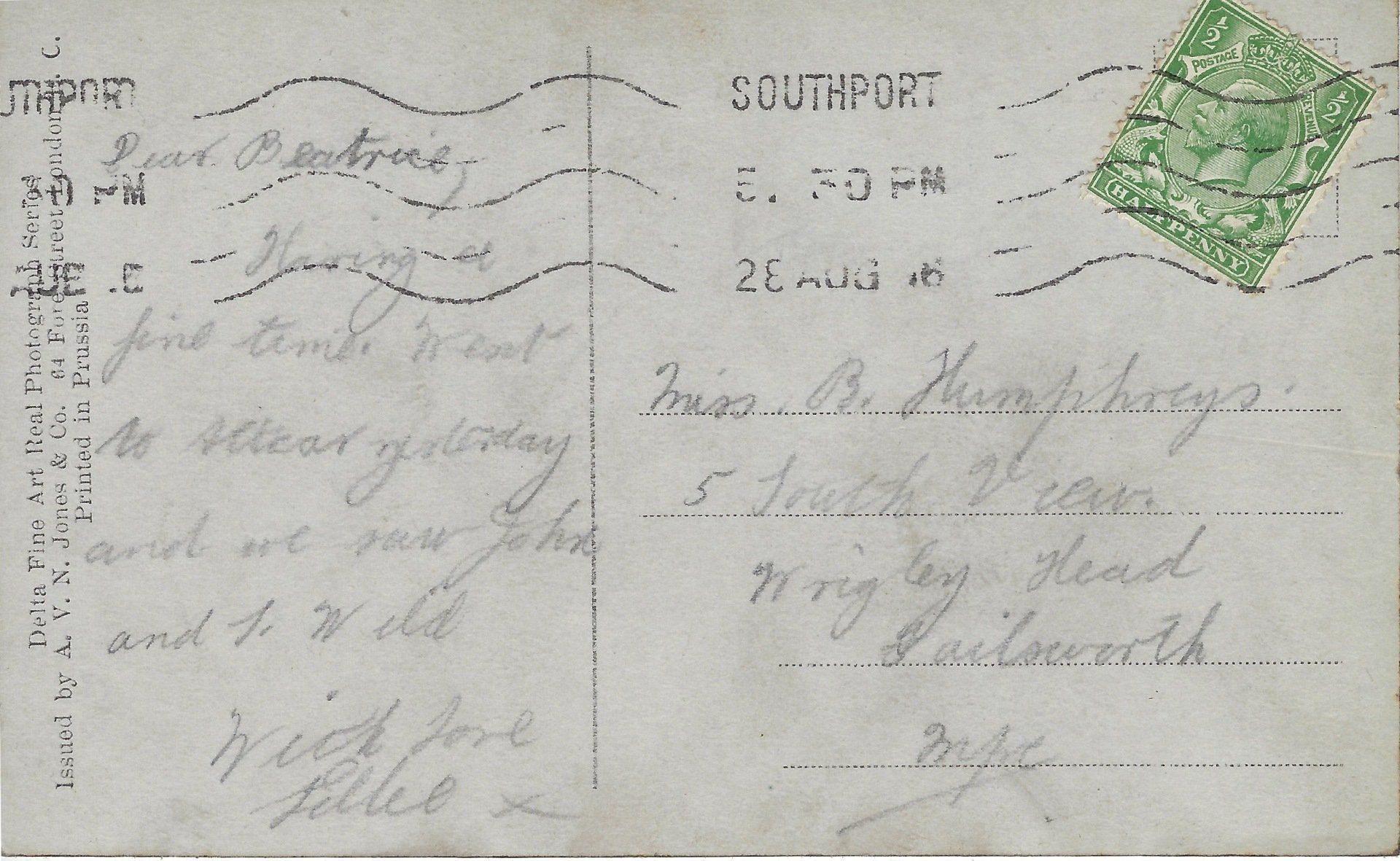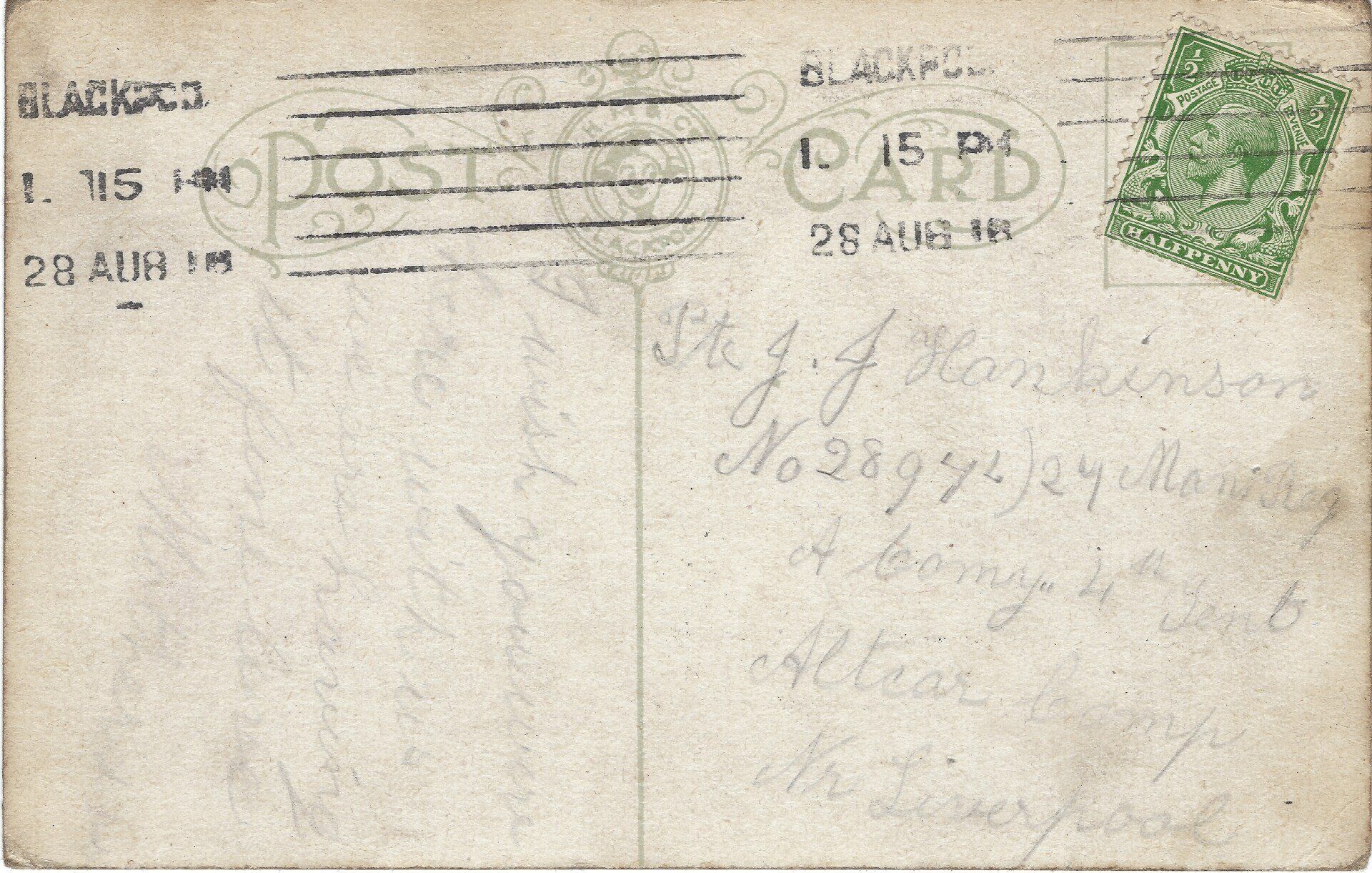 JJ Hankinson and The Manchester Regiment 1916. Lodging at 83, London Street, Southport.