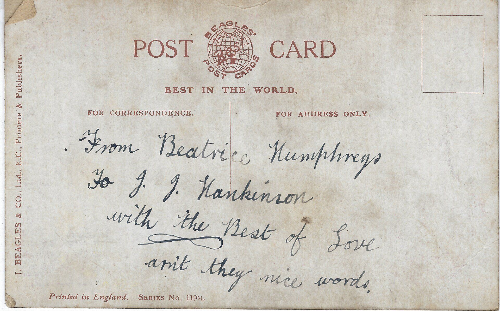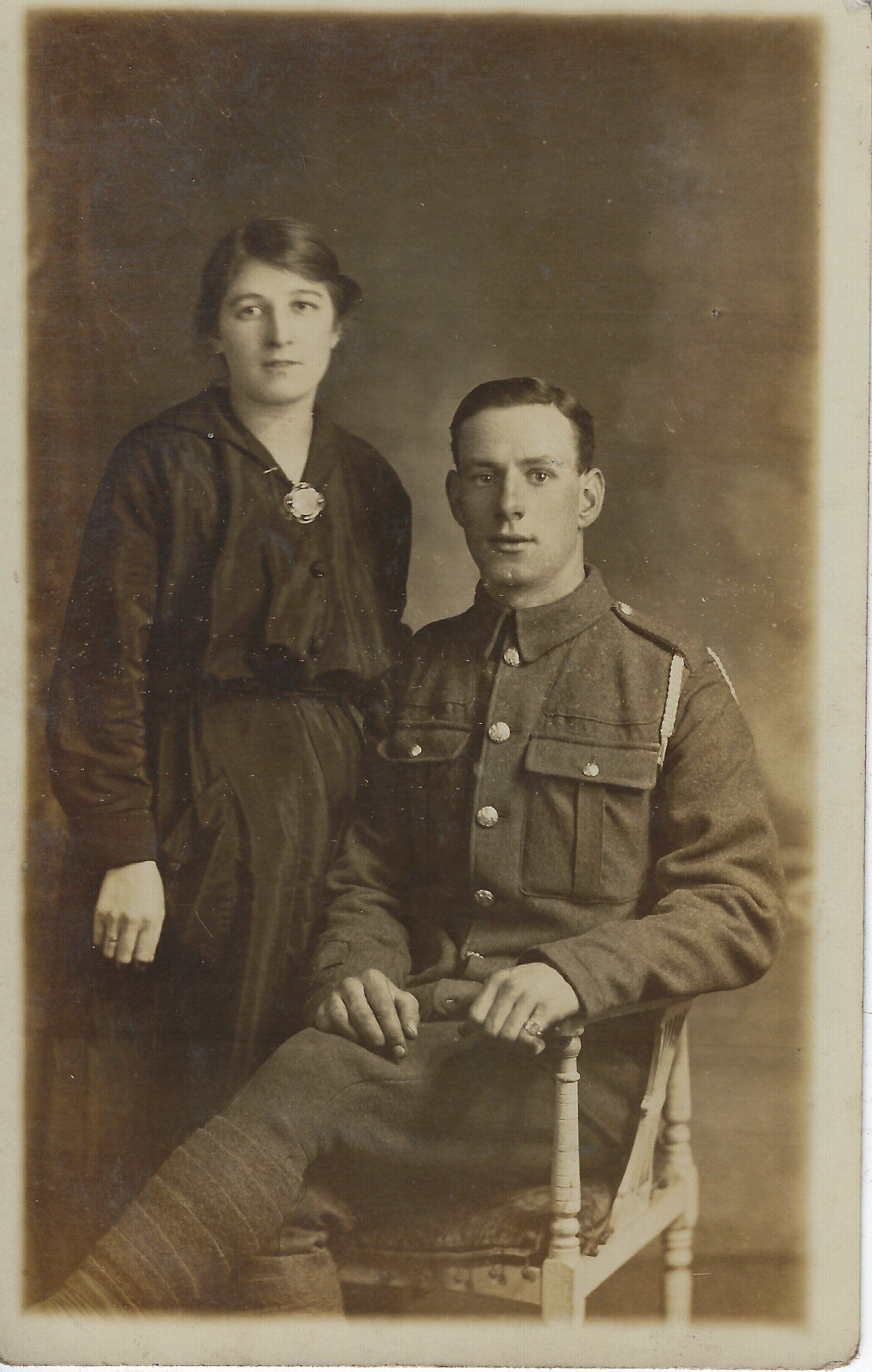 ButtonBeatrice and John James Hankinson. He is wearing jodhpurs perhaps pointing to his work being with the horses. 1916
