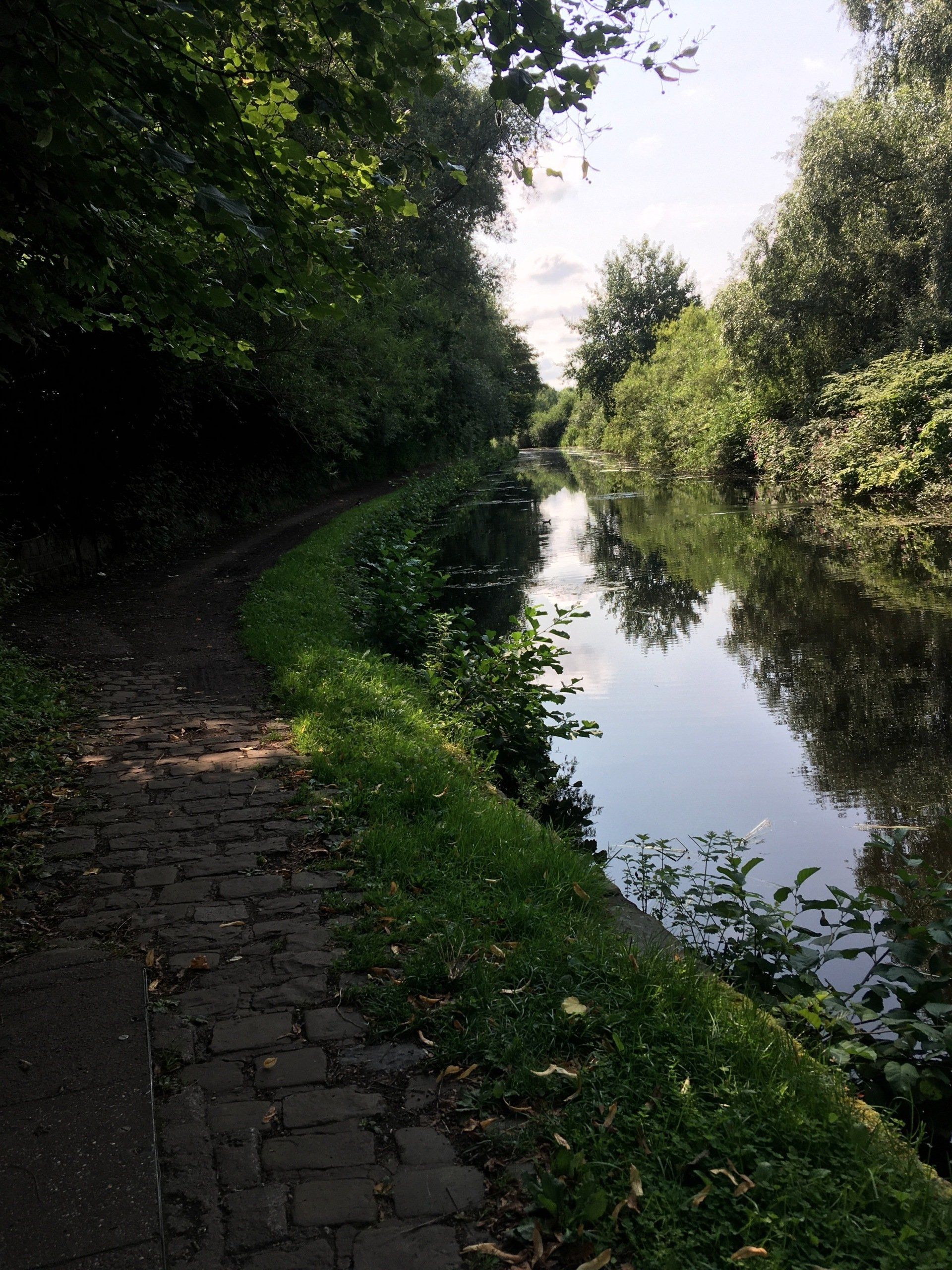Today the boys took the cobbled steps on the left, that led around and down to the towpath, and we followed them; down through the cluster of tres that made me feel like I was entering a dark spooky grotto before it opened onto the light of the canal towpath again.